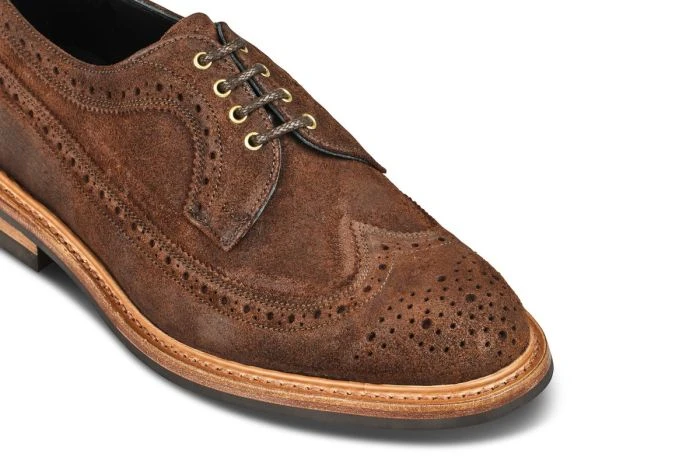 Richard is a Longwing brogue, also known as “American” brogues are characterised by wings that extend the full length of the shoe, meeting at a centre seam at the heel.