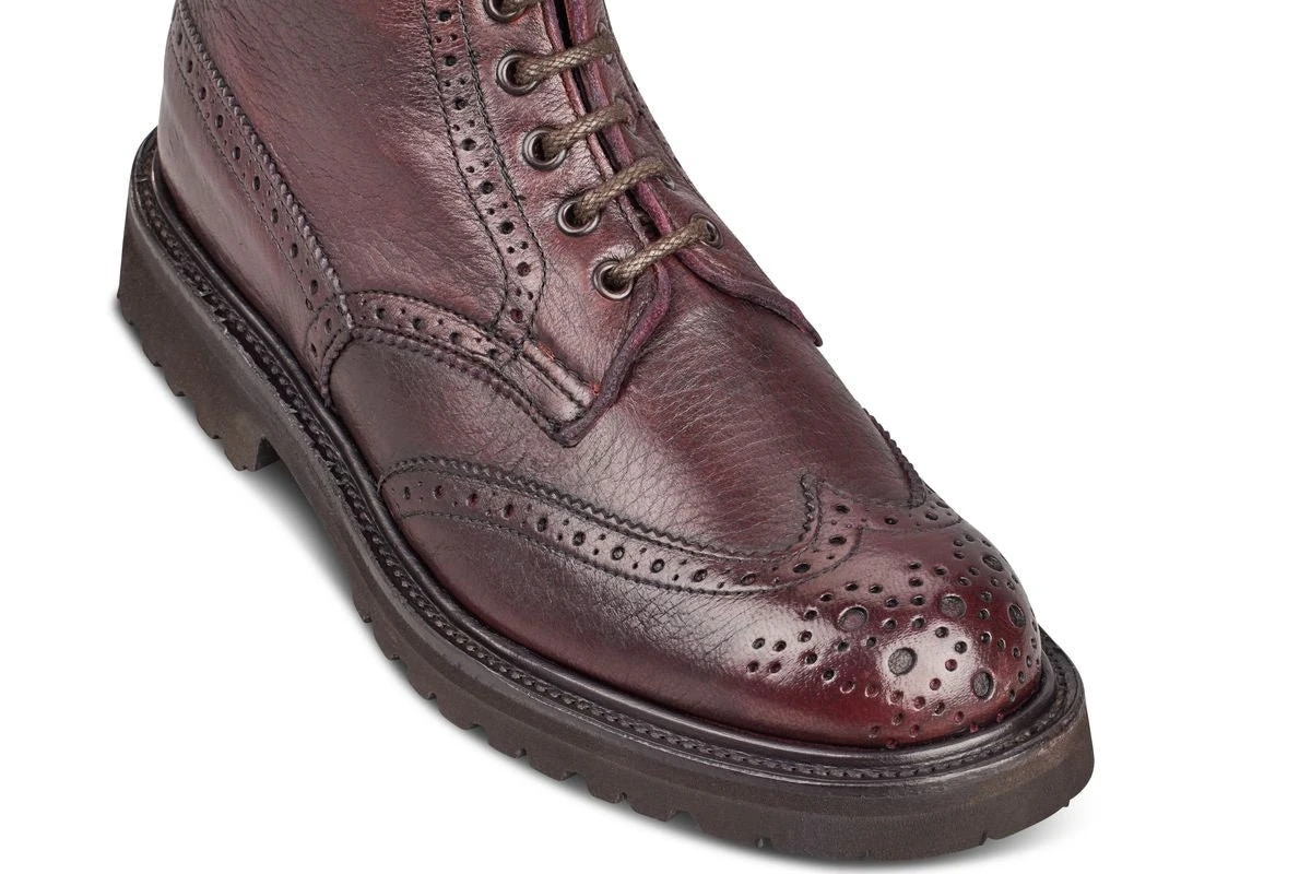 Stephy is Tricker’s most iconic women’s boot. Made originally as a country boot, but now worn by women all around the world across fields and cities. The Stephy Derby ankle boot is instantly recognisable for its brogue patterning synonymous to Tricker’s; however its strong, solid build and seven eyelets make it as recognisable, whilst by no means flashy. A half bellows tongue is folded and attached to the boot to provide a watertight seal, with the storm welt providing an additional watertight seal between the shoe’s upper and sole.Â